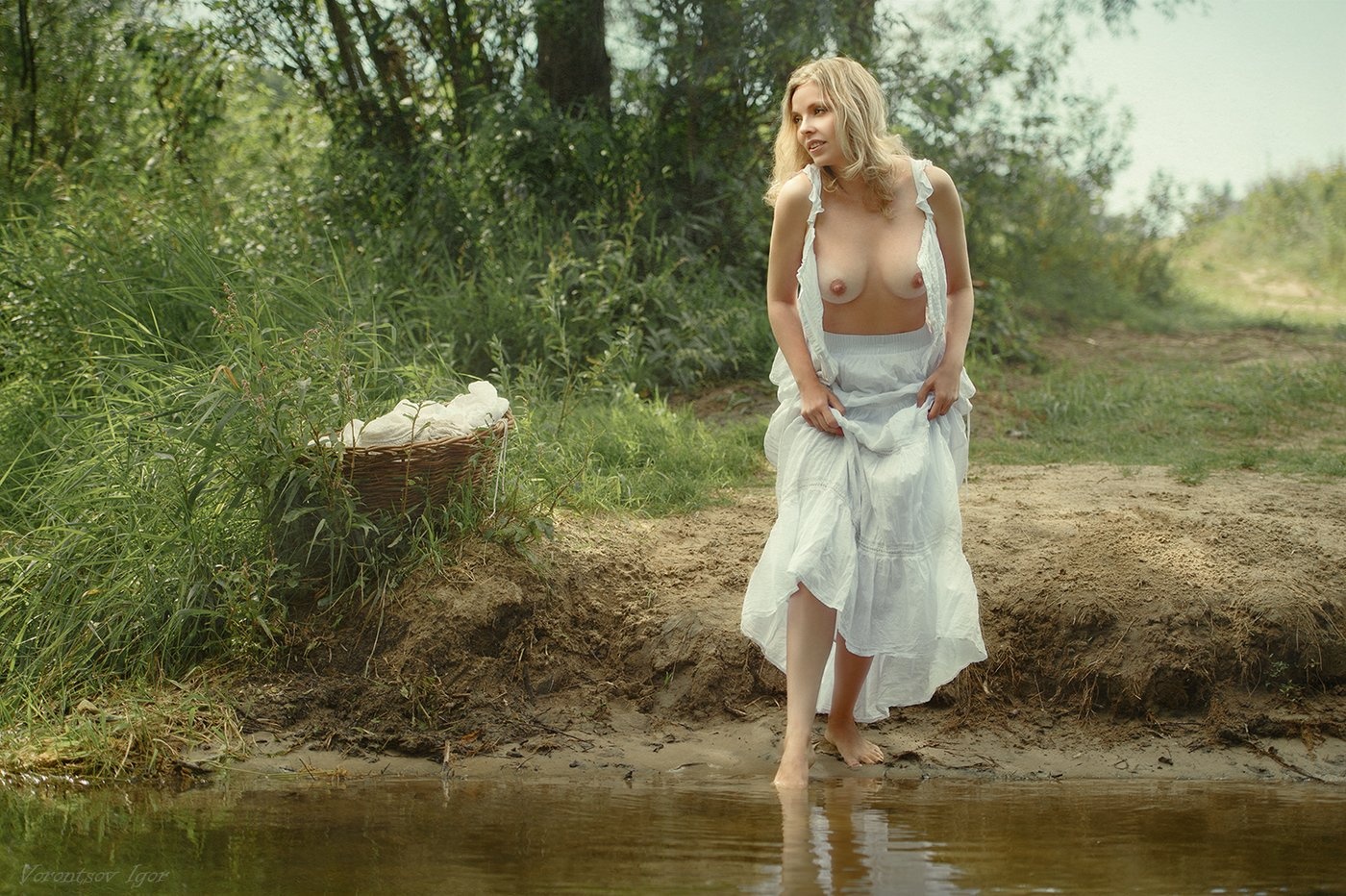 Голая девка на берегу реки