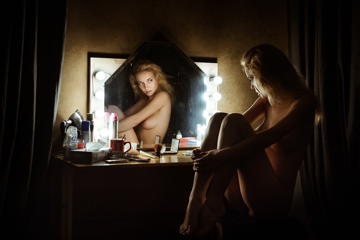 Голая сидит перед зеркалом