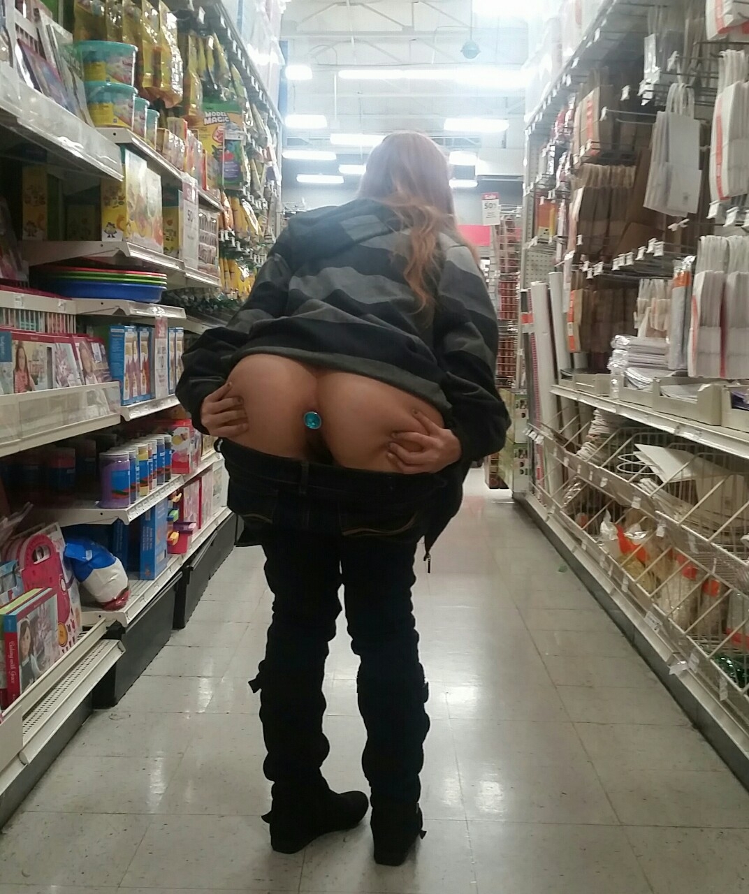 Приспустила трусики в магазине