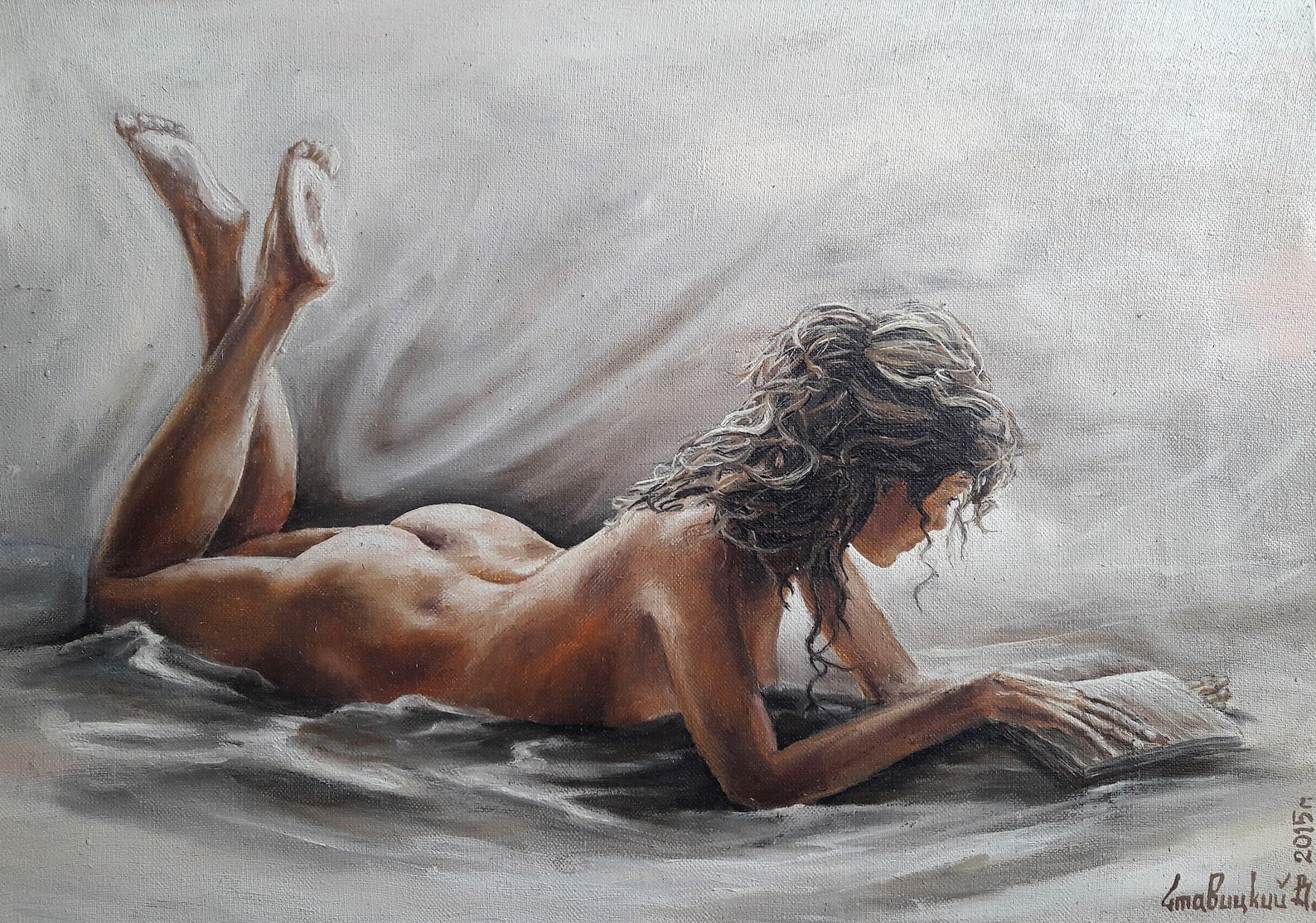 The Grey nude Painting by Saad Michael Aoun