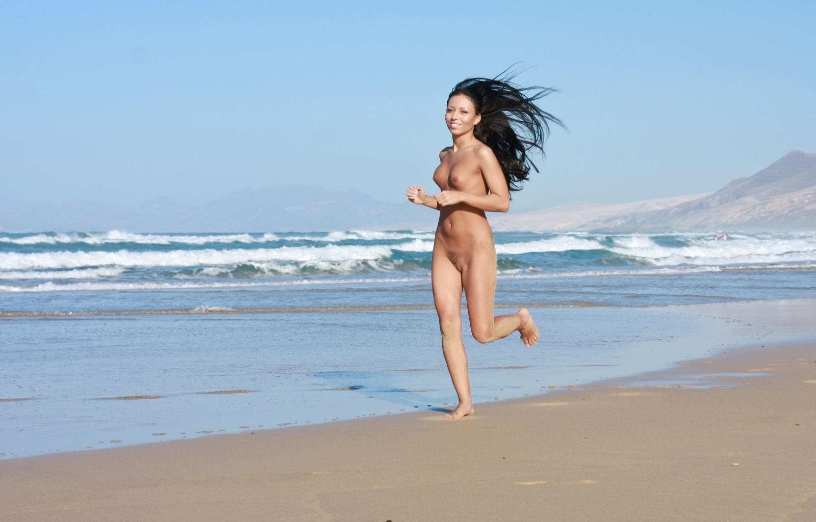 Голая девушка бежит по пляжу (63 фото)