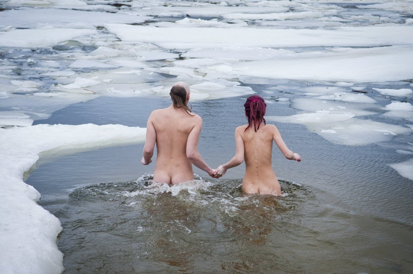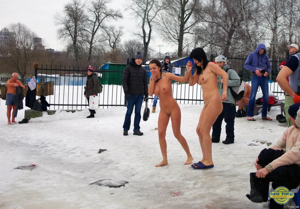 Голые девки купаются зимой