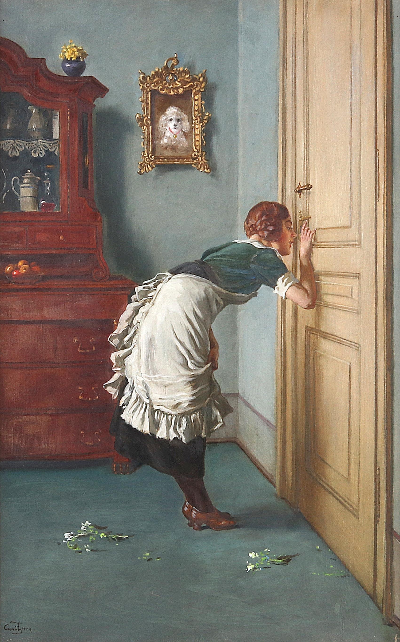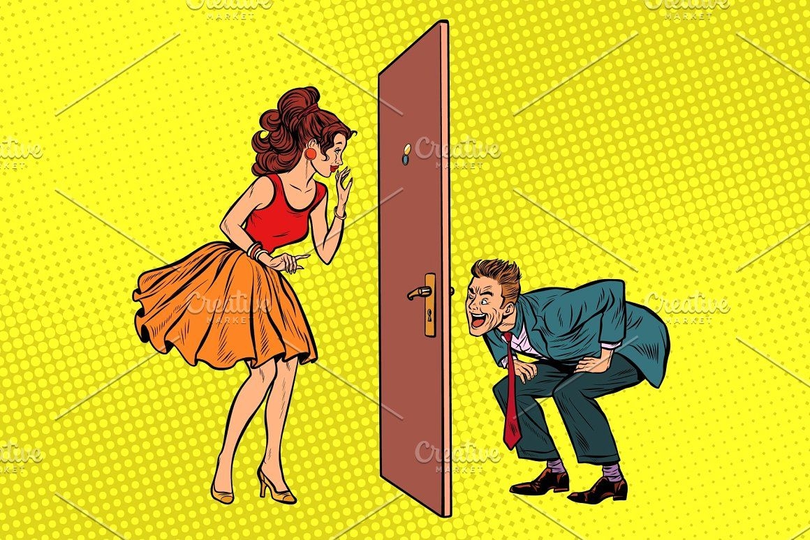 Подсматривает в замочную скважину