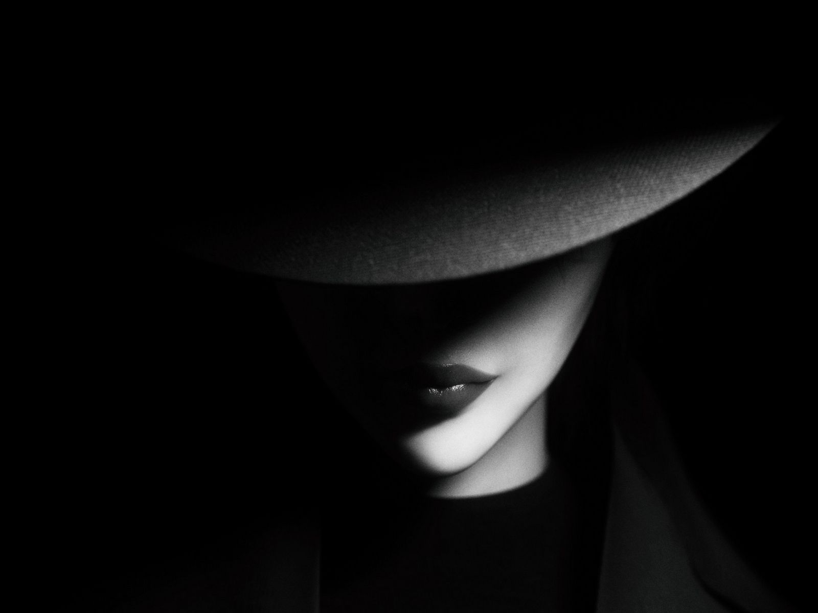 Девушка в шляпе черно белое