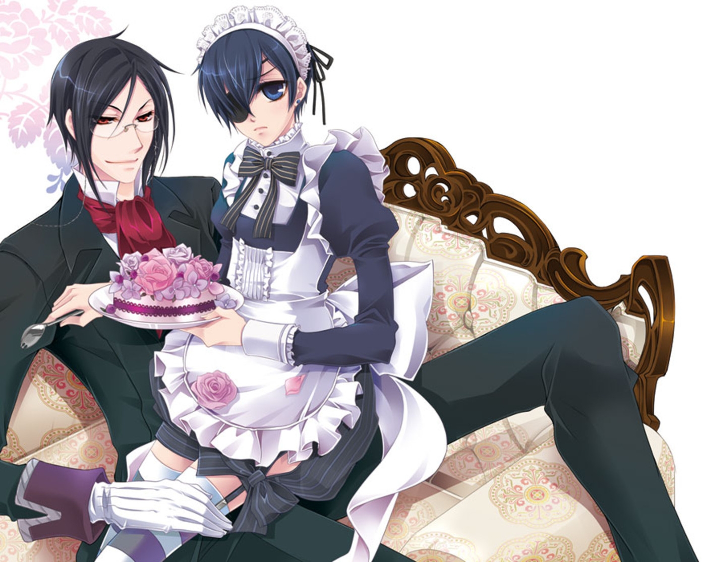 Сиэль в костюме горничной и Себастьян