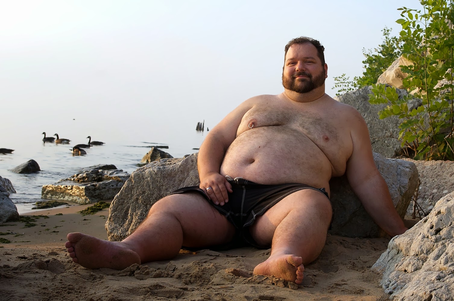 Голые толстые мужчины на пляже