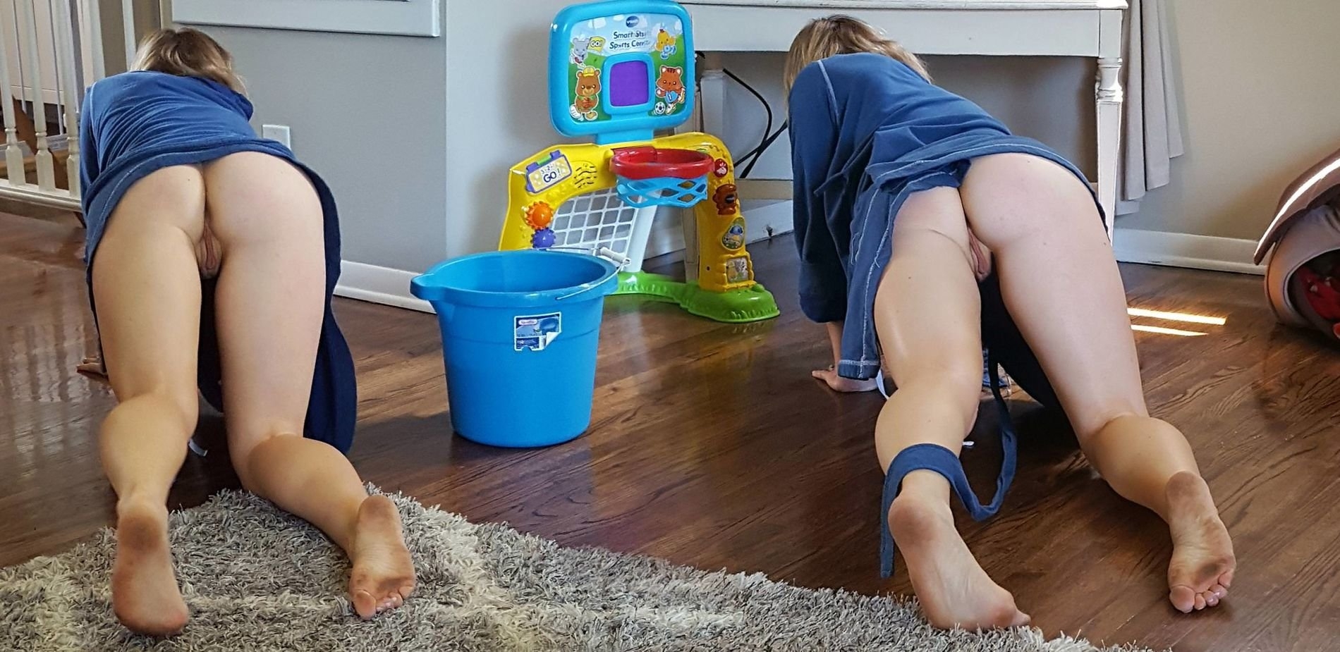 Женщины моют пол без трусов
