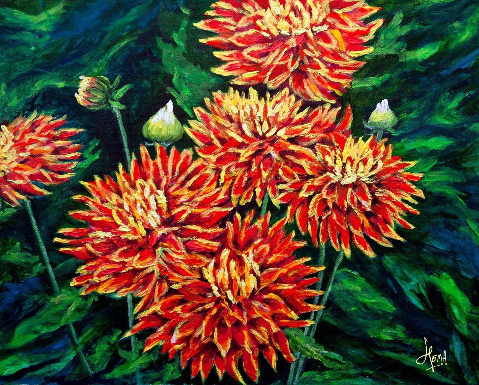 Батик георгины