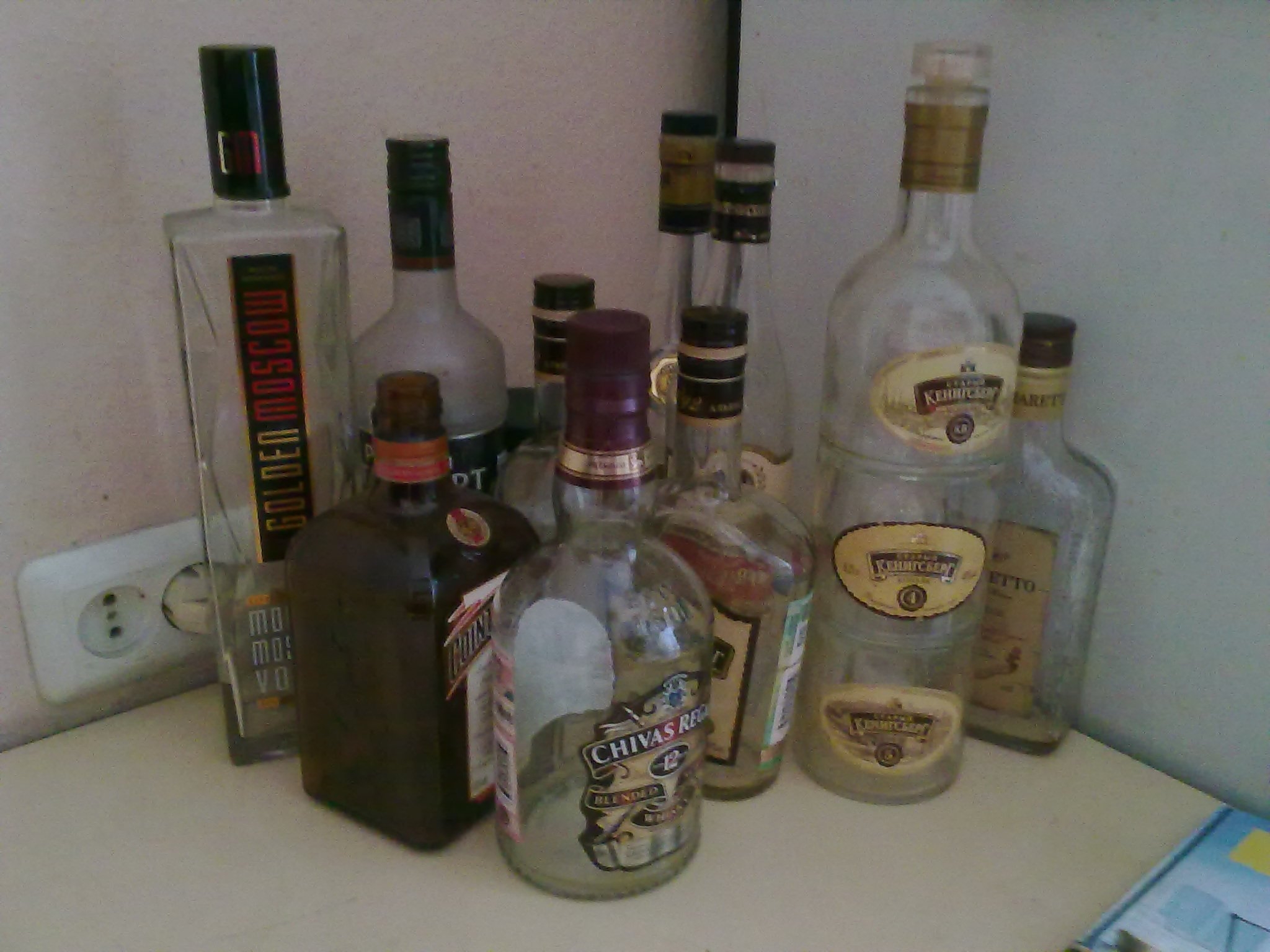 Пьян с бутылкой в киске