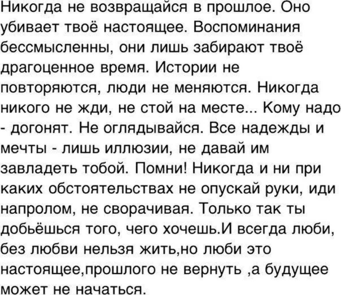 Никогда не возвращайся в прошлое оно убивает твое настоящее
