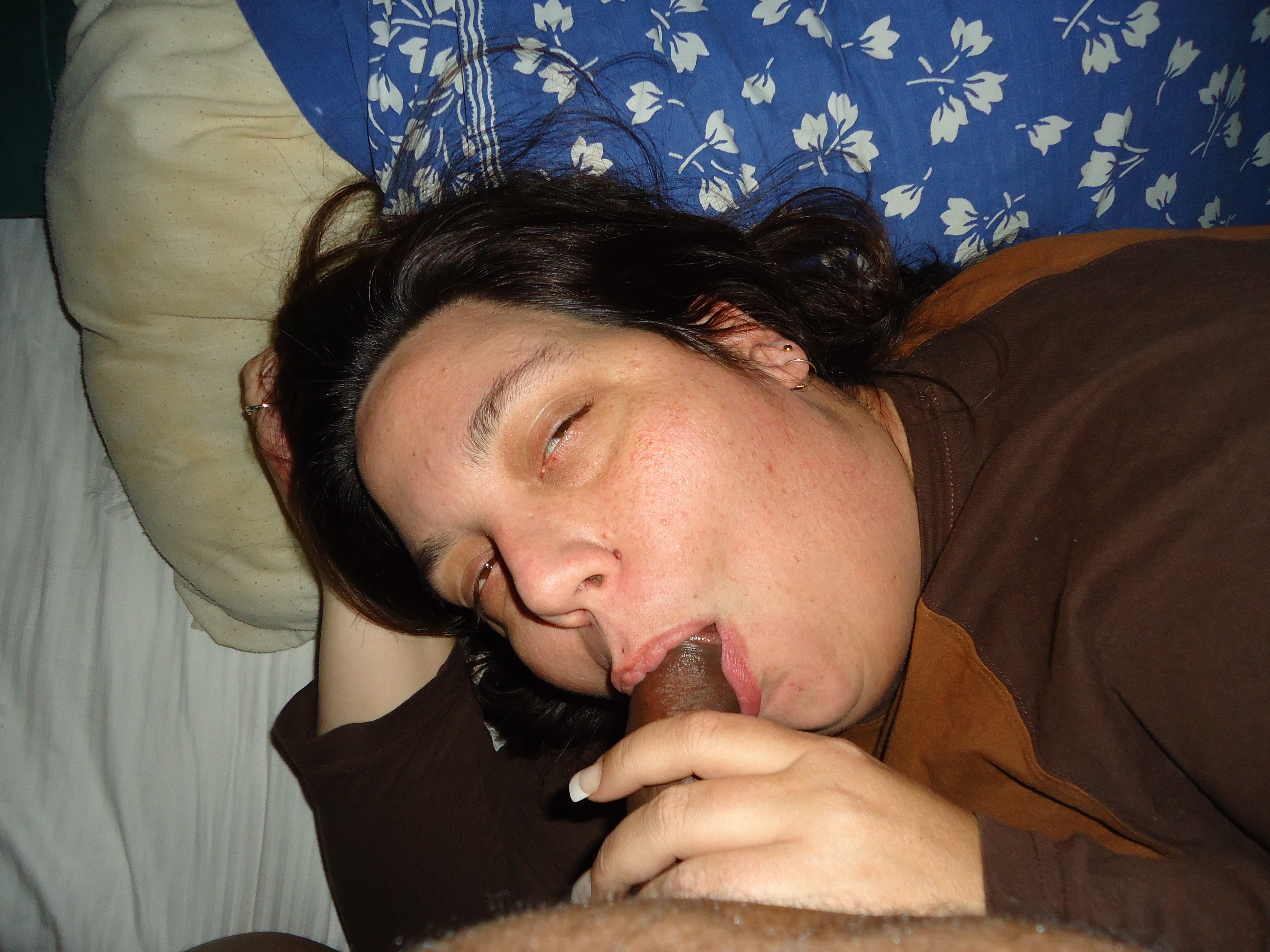 Жена позирует с хуем во рту
