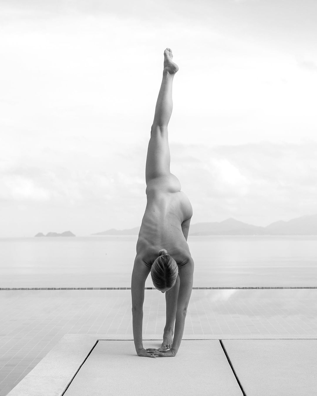 Голая йога на берегу моря